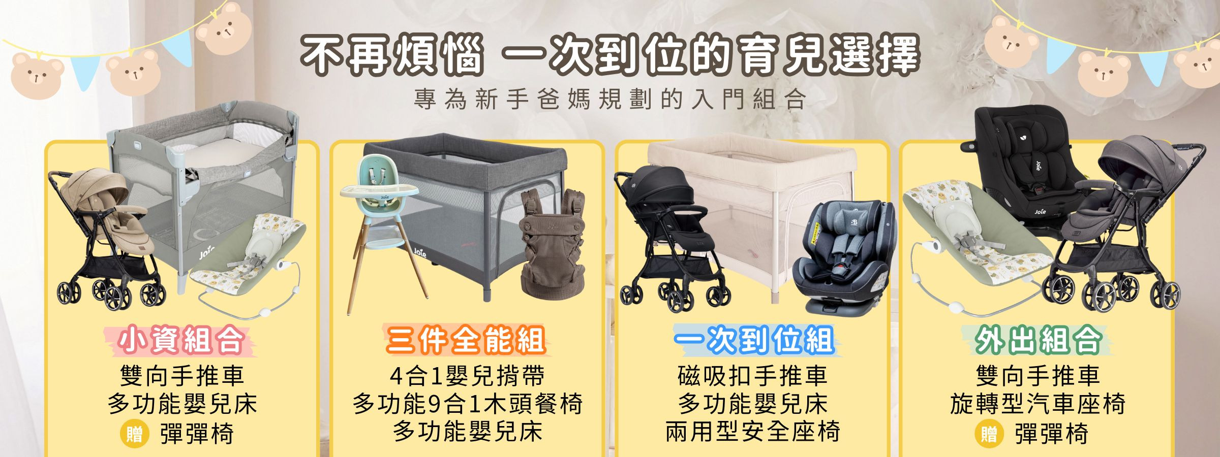 小資組合🌟JOIE手推車 + 嬰兒床 + 德國 安全汽車座椅 育兒一次到位三件組