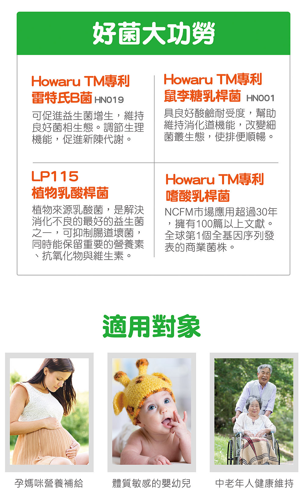 (3)Howaru TM專利雷特氏B菌HN019可促進益生菌增生,維持良好菌相生態。調節生理機能,促進新陳代謝。