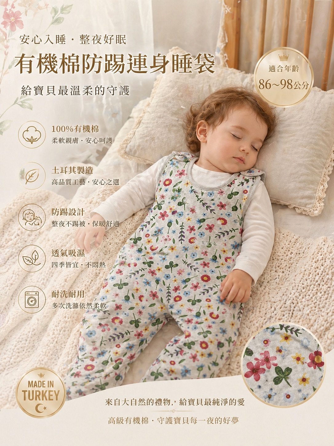 成分:95%棉5%弹性纖維 尺寸:治本卡背面,前面數字為公分,括號+8為月份