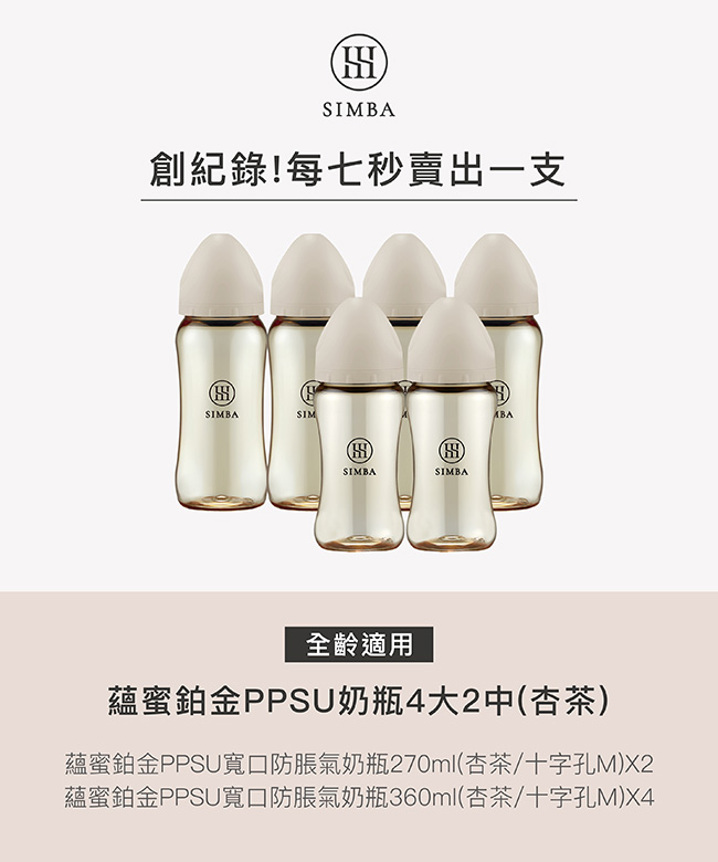 小獅王辛巴 全齡適用-蘊蜜鉑金PPSU寬口防脹氣奶瓶(4大2中)