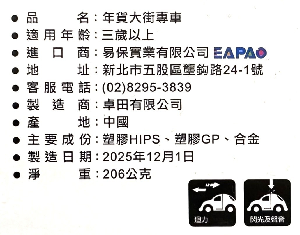 【 馬年限定 】EAPAO 年貨大街專車 聲光迴力車