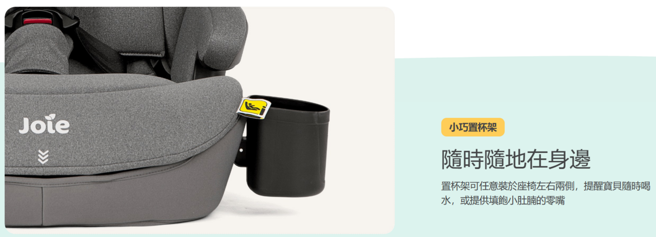 • 置杯架可隨心置於座椅兩側