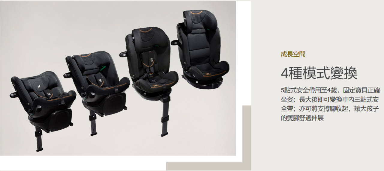 • 前向模式車內三點式安全帶:15-36公斤(約3.5-12歲/100-150公分)