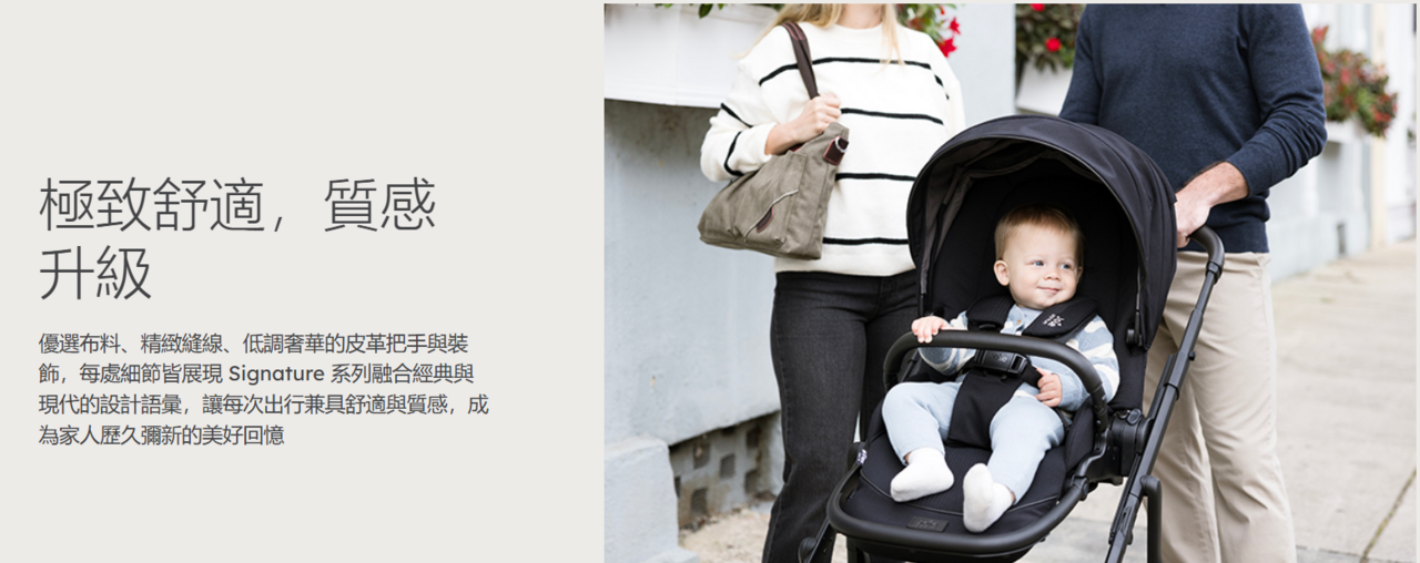 Joie Signature 系列融合經典設計與現代美學,將細膩工藝與舒適質感注入每一天的育兒用品中,讓日常出行也能展現從容與品味。