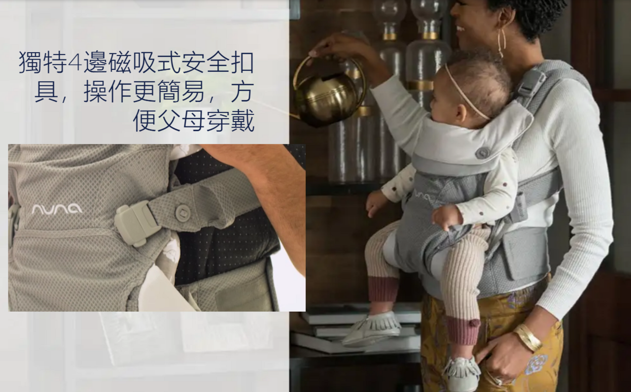 CUDL™的誕生滿足爸媽想與寶寶心貼心的願望,不僅寶寶能舒適安全地被揹負,同時也能解放爸媽忙碌的雙手。 獨特升級的4個磁吸式安全扣具,讓使用更直覺、更順手,只需輕鬆一碰即可吸附,輕壓即可解鎖,迅速完成穿戴。
