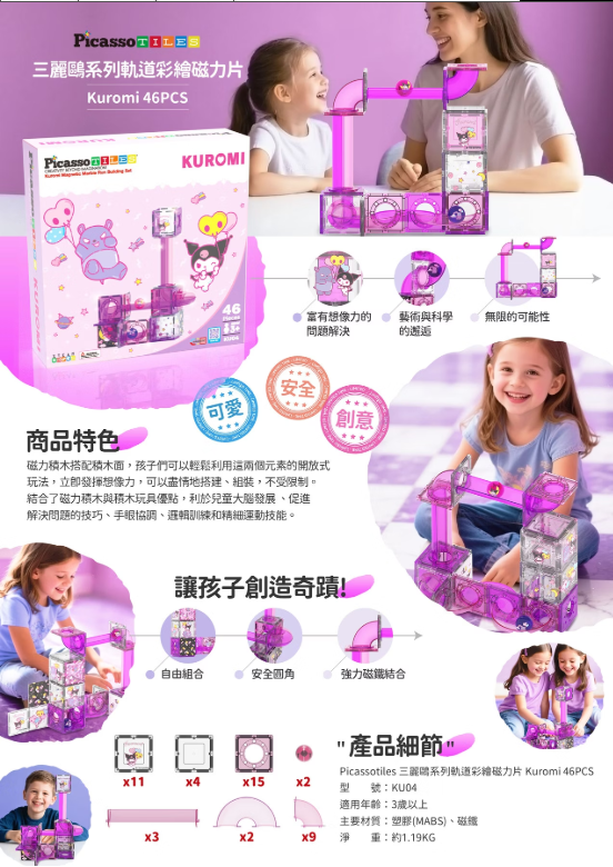 Picassotiles 三麗鷗系列 酷洛米軌道彩繪磁力片 Kuromi 46PCS