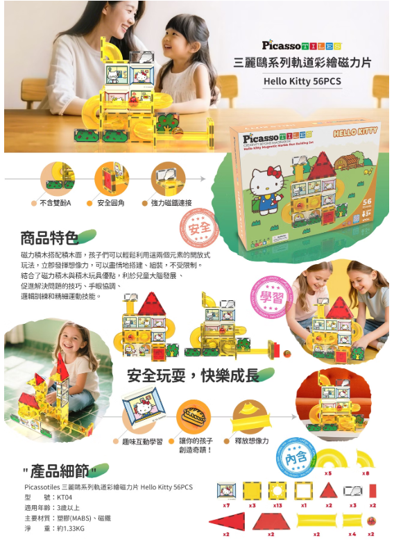 Picassotiles 三麗鷗系列Hello Kitty軌道彩繪磁力片 56PCS