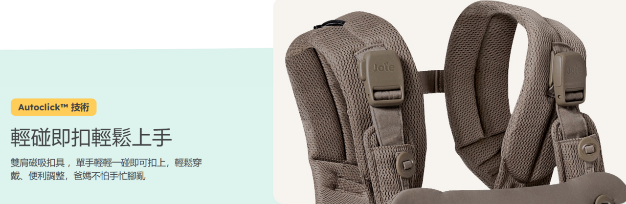 • 肩帶配備AutoClick™ 磁吸扣設計,一扣即合,一人輕鬆上手
