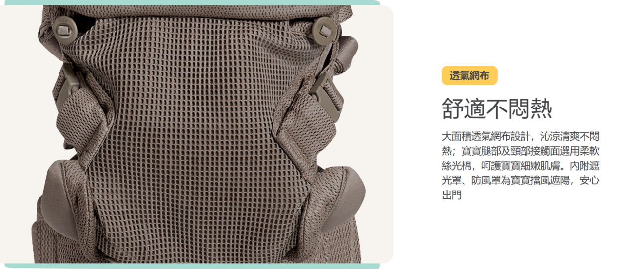 延續 savvy™ 經典揹帶設計,讓您輕鬆背起寶寶,全新升級採用透氣網眼布料