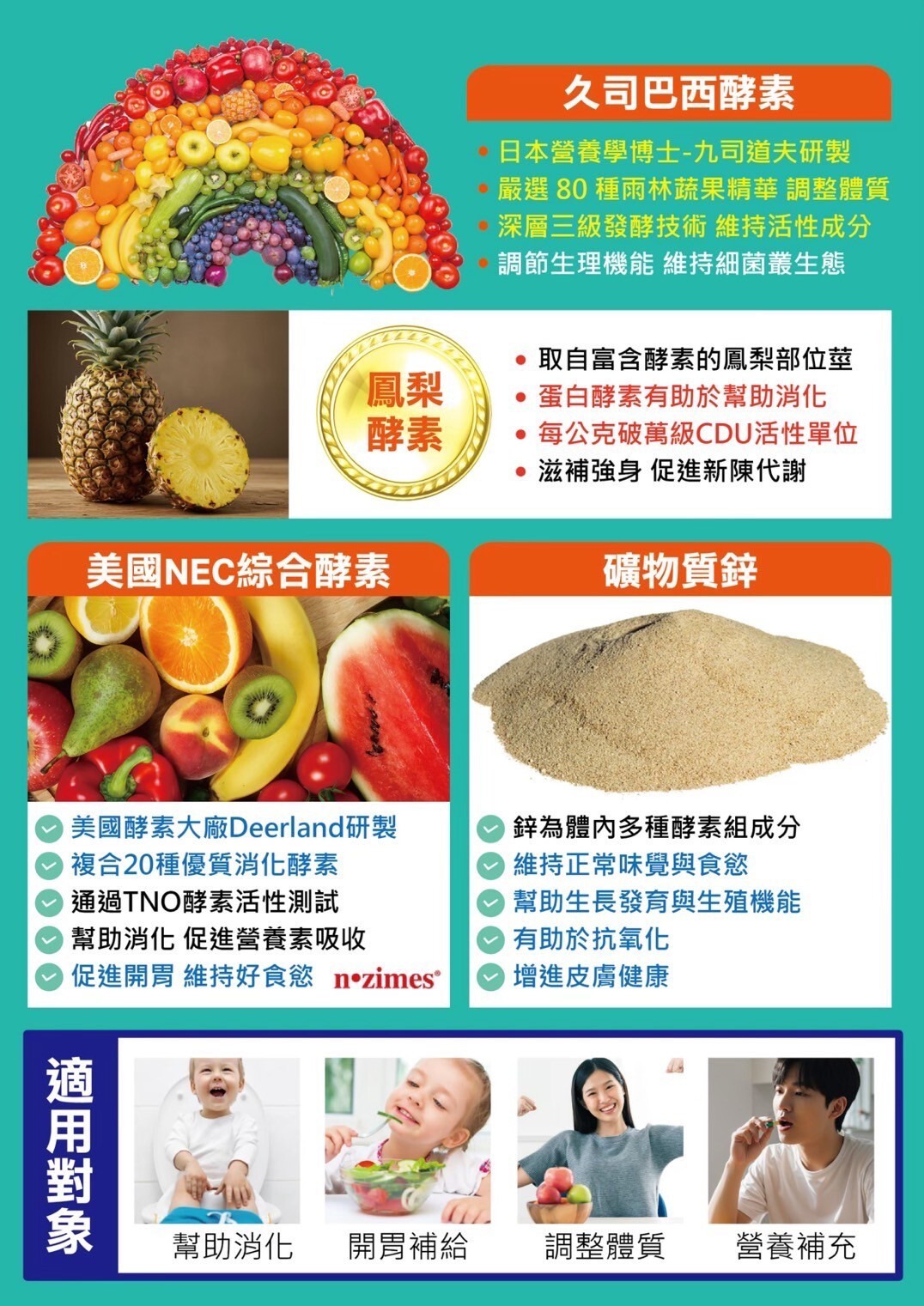 ✨鋅:鋅爲胰島素及多種酵素成分,有助於維持正常味覺與食慾,增進皮膚健康及維持生長發育及生殖機能