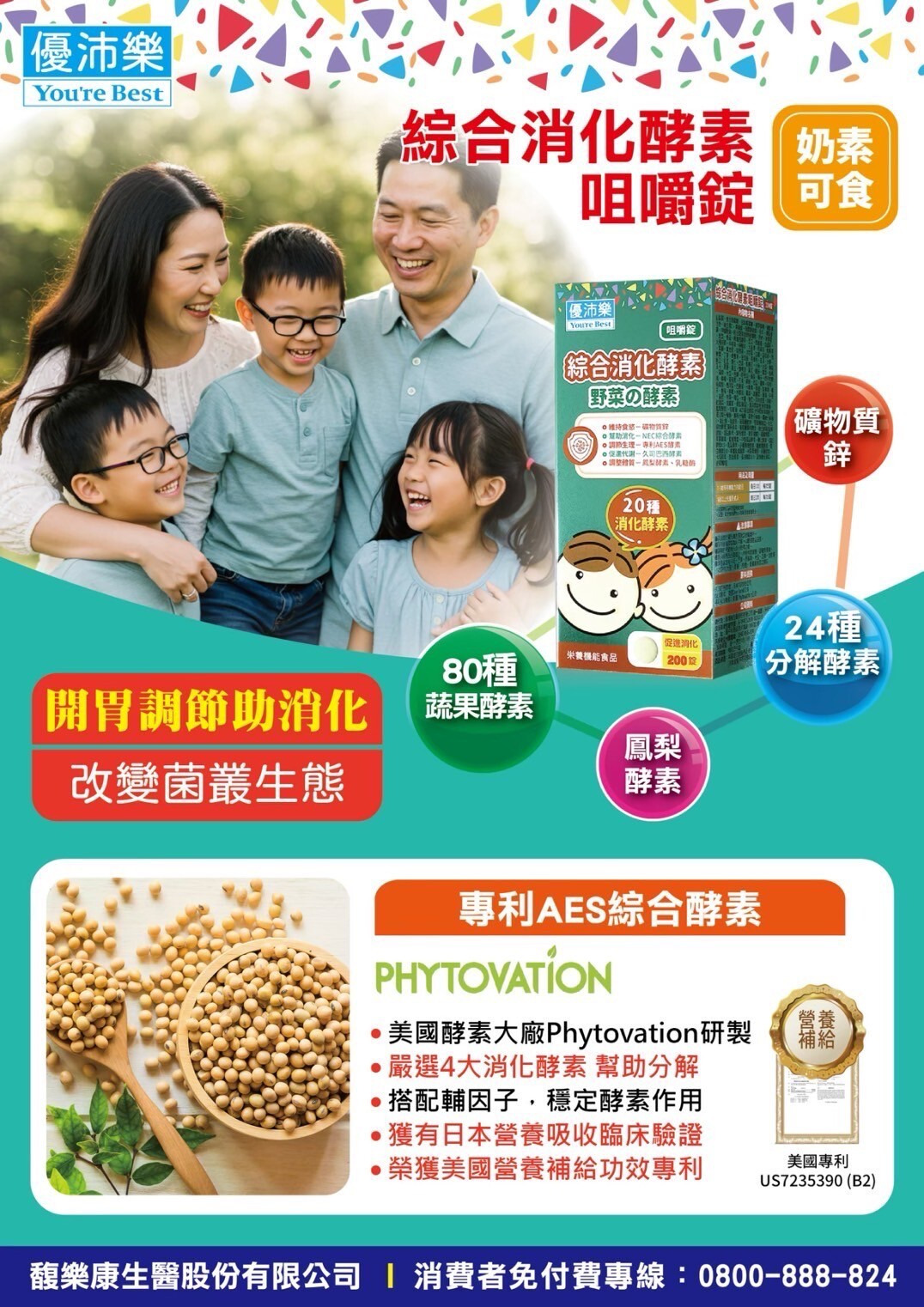 ✨專利AES酵素:美國百年大廠研製酵素,榮獲營養補給專利認證,以非基改大豆作為基底,利用麹菌發酵而成,使酵素耐胃酸不怕破壞