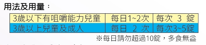 3歲以下有咀嚼能力兒童 每日1~2次 每次3錠