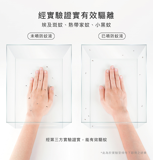 •經實驗證實,有效驅離埃及斑蚊、熱帶家蚊、小黑蚊...等多種蚊蟲
