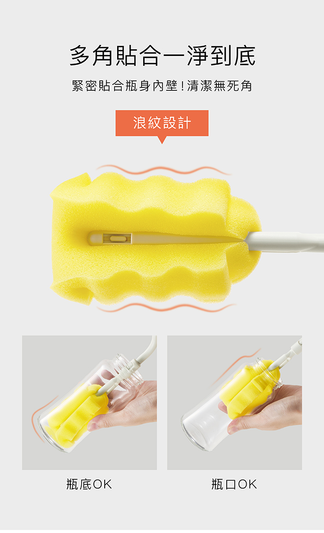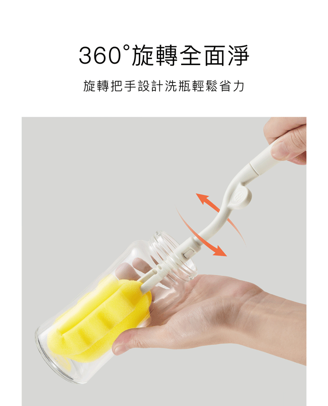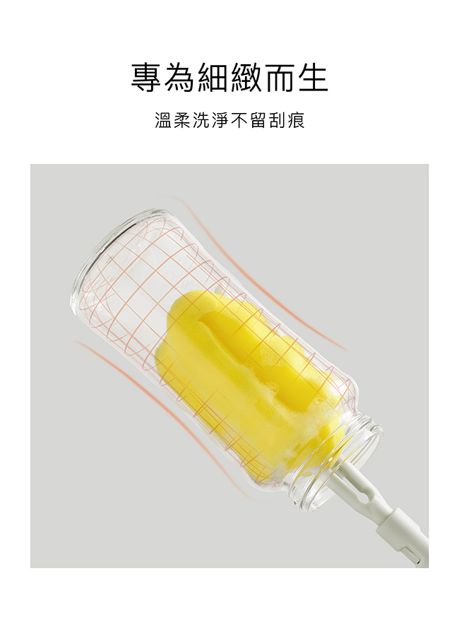 超柔無垢海綿快拆旋轉奶瓶刷、超柔無垢海綿奶嘴刷