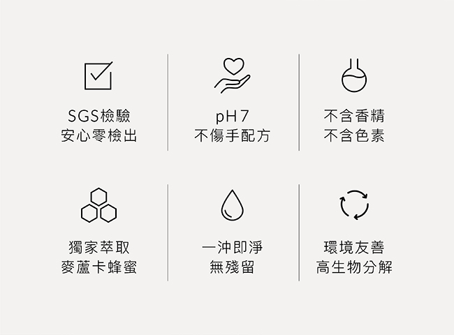 成分:水、月桂醯胺丙基二甲基甜菜鹼、α-磺化-ω-烴基聚環氧乙烷-C10-16-烷基醚鈉鹽、D-葡萄派喃糖癸基辛基葡醣苷寡聚物、N-[3-(二甲胺基)丙基]十二醯胺N-氧化物、丙三醇(甘油)、氯化鈉、肉豆蔻酰胺丙基胺氧化物、2-羥基丙烷-1,2,3-三羧酸、PEG-150季戊四醇四硬脂酸酯、PPG-2羥乙基椰油酰胺、蛋白分解酵素/枯草桿菌蛋白酶、氯己定二葡糖酸鹽、2-甲基異噻唑啉-3-酮、蜂蜜萃取(麥蘆卡蜂蜜)
